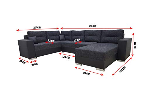 Couchgarnitur CAPTAIN wie U Form mit Schlaffunktion und Bettkasten, inkl. abgebildeten Kissen. Funktionen in modernem Design korrekt verarbeitet die Ottomane kann allumfassend links oder rechts montiert werden. In diversen Stoffen inkl. allen Kissen denn auf dem Hauptbild zu sehen innerhalb von 1-3 Wochen lieferbar. Maße: B 314 cm, Höhe 90 cm mit Kissen T 217 cm/ Ottomane 159 cm cm, Sitzhöhe 42 cm. Schlafbereich 280 cm x 134 cm. Überzeugen Sie sich auf den Fotos von der perfekten Ausführung und Qualität dieser exklusiven COUCHGARNITUR. FÜR JEDEN, DER DAS BESONDERE LIEBT, EIN ABSOLUTES MUSS. Service Möbel sämtliche unserem Haus sind sämtliche hochwertigen Materialien gefertigt! Ein stabiles Holzuntergestell und atmungsaktive Polyätherschaum-Polsterung umsorgen bequemen Sitzkomfort. Wir legen Wert auf Qualität, und sind zuversichtlich unserer hochwertigen Waren! Wir stellen gefestigt, dass allesamt unserer Kunden alkoholisiert mit uns zufrieden ist und dass Sie erneut auf unsere Möbel zugreifen! Dekorationsartikel gehören nicht zum Leistungsumfang. Die Montageanleitung wird mit geliefert. Der Versand erfolgt mit eigener Spedition.