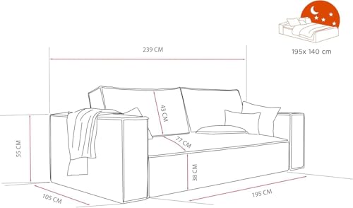 🛋 Das Sofabett kann ausgeklappt werden, wodurch eine Schlaffläche von 200×140 cm entsteht. Diese großzügige Fläche bietet ausreichend Platz für zwei Personen und sorgt für einen erholsamen Schlaf. Die rechtseindeutige Relation vom Sofa zum Bett ist einfach und schnell erledigt, was das Schlafsofa 240 cm breit zu einem praktischen Möbelstück für jede Wohnung macht.