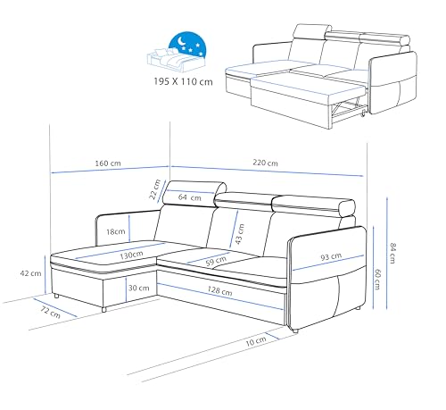 😴 Gut schlafen und Platz sparen – Schlafcouch mit Bettkasten: Das Multifunktions-sofa verfügt über eine praktische Schlaffunktion, die es ermöglicht, es in ein bequemes Bett mit den Maßen 195×110 cm zu verwandeln. Zusätzlich bietet es einen integrierten Bettkasten zur Aufbewahrung von Bettwäsche oder anderen Gegenständen.