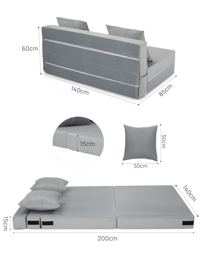 GROße GRöße: Wie Sofa: 140 cm (Länge) x 85 cm (Breite) x 60 cm (Höhe); Wie Bett: 200 cm (Länge) x 140 cm (Breite) x 15 cm (Höhe). Die großen Maße bieten Platz statt dessen mehrere Personen oder sind ideal statt dessen Familien.