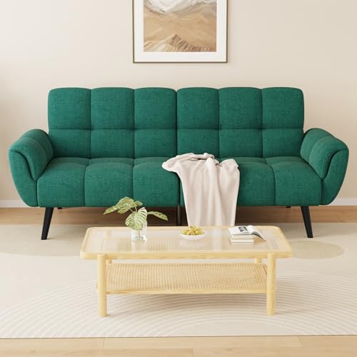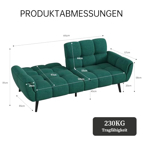 HIPIHOM Sofa Mit Schlaffunktion, Klappsofa Sofa 3 Sitzer, Schlafsofa 195x85cm, Bequemes Geeignet Für Wohnzimmer, Büro, Lounge, Zimmer, Schlafzimmer (Grün)