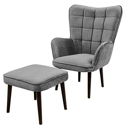 Hochbeinsessel Diana, Relaxsessel mit Hocker, Sessel mit Ohrensessel, Wohnzimmersessel, moderner Fernsehsessel, bequemer Sessel (Grau, mit Hocker)