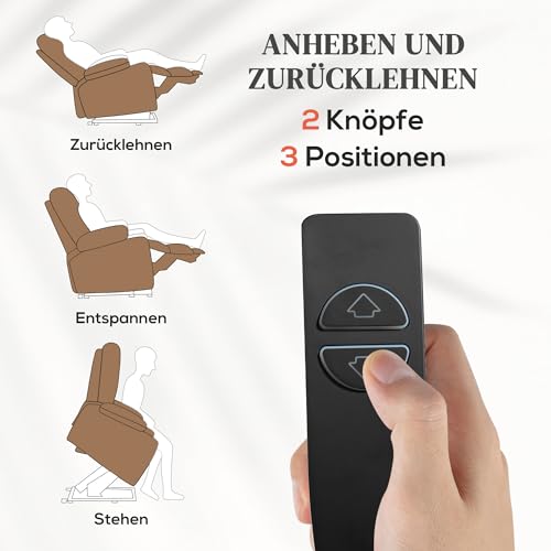 Heben und Neigen: Dieser TV-Sessel ermöglicht eine 20°-Anhebung, ideal zum Aufstehen ohne Alternative Belastung für Rücken oder Knie. Er lässt sich geruhsam bis zu 135° neigen oder in jedem gewünschten Winkel anhalten. Die Auflösung erfolgt einfach und mühelos über die elektrische Steuerung.