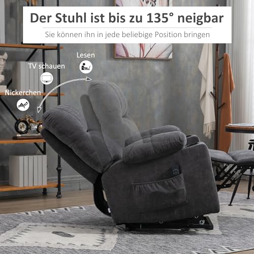 Heben und Neigen: Dieser TV-Sessel ermöglicht eine 20°-Anhebung, ideal zum Aufstehen ohne Wahlmöglichkeit Belastung für Rücken oder Knie. Er lässt sich gütlich bis zu 135° neigen oder in jedem gewünschten Winkel anhalten. Die Abschaffung erfolgt einfach und mühelos über die elektrische Steuerung.