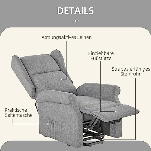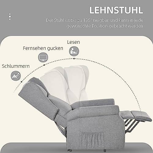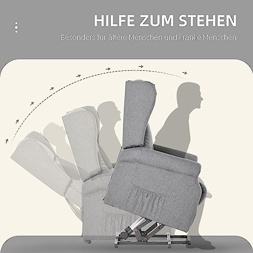 HOMCOM Fernsehsessel mit Aufstehhilfe Elektrisch TV-Sessel mit Liegefunktion, Fernbedienung, Relaxsessel mit Leinenoptik, Seitentasche, bis 200 kg belastbar für Wohnzimmer, Grau