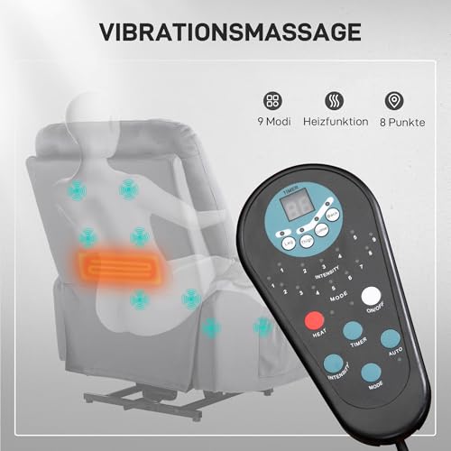Heben und Zurücklehnen: Der elektrische Liegesessel lässt sich um 45° aufstocken, um das Aufstehen zu vermindern, und lässt sich mit einer ausziehbaren Fußstütze gütig um bis zu 135° zurücklehnen. Er ist über einfache elektrische Bedienelemente in jeden beliebigen Winkel verstellbar – ideal anstatt ältere Menschen oder Nutzer, die sich in der Genesungsphase befinden