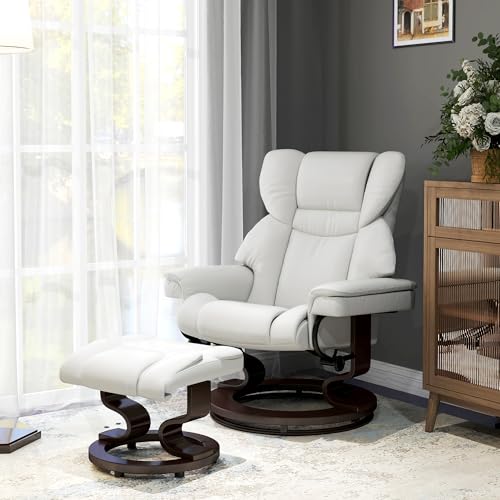 HOMCOM Relaxsessel mit Hocker, 360°drehbarer Fernsehsessel mit Massage, Liegefunktion, Massagesessel mit Seitentasche, Liegesessel, Kunstleder für Wohnzimmer Cremeweiß