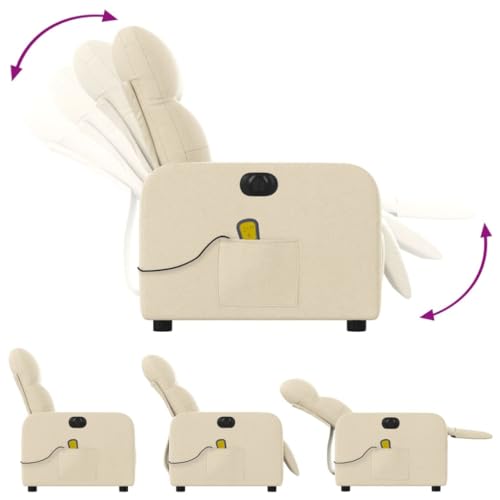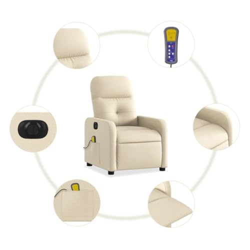 Homgoday Massagesessel Elektrisch Fernsehsessel Relaxsessel mit Liegefunktion, Ruhesessel Polstersessel TV Sessel, Verstellbare Rückenlehne, für Wohnzimmer Creme Stoff