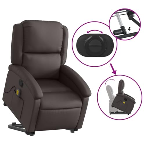 Homgoday Massagesessel mit Aufstehhilfe, Aufstehsessel Fernsehsessel Relaxsessel mit Liegefunktion, Seniorensessel Ruhesessel TV Sessel Liegesessel für Wohnzimmer Dunkelbraun Echtleder