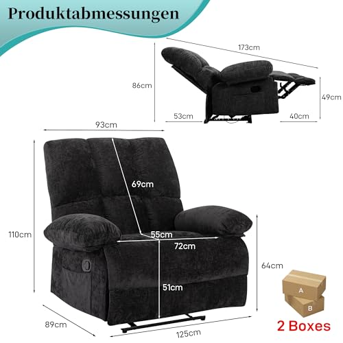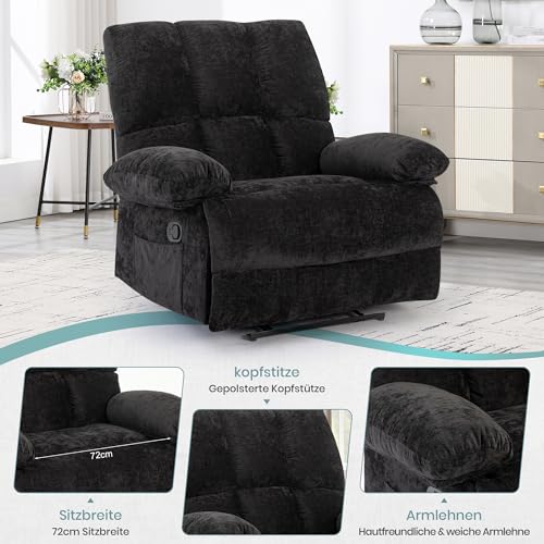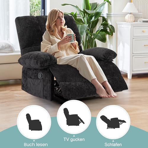 HOMYEDAMIC Fernsehsessel mit liegefunktion, Relaxsessel mit Leinenoptik,Sessel liegesessel bis 150 kg belastbar, für Wohnzimmer, Schwarz