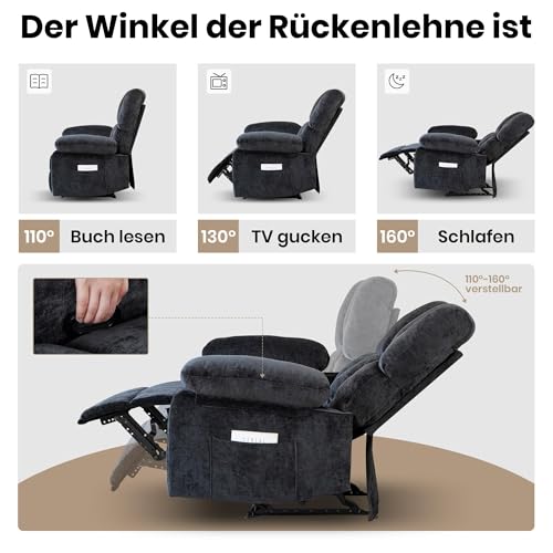 HOMYEDAMIC Fernsehsessel mit liegefunktion,Relaxsessel mit Leinenoptik,Sessel liegesessel bis 150 kg belastbar,für Wohnzimmer(Dunkelgrau, Kleine)