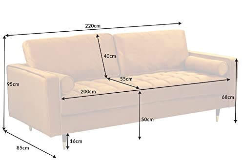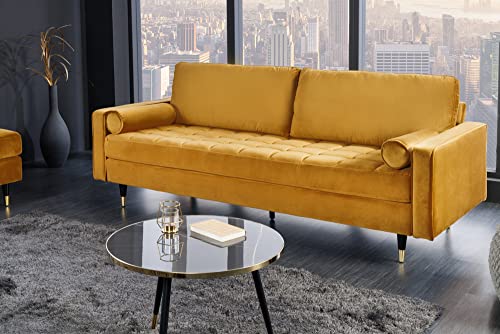 invicta INTERIOR Elegantes Design 3er Sofa Cozy Velvet 220cm senfgelb Samt Federkern Couch Dreisitzer