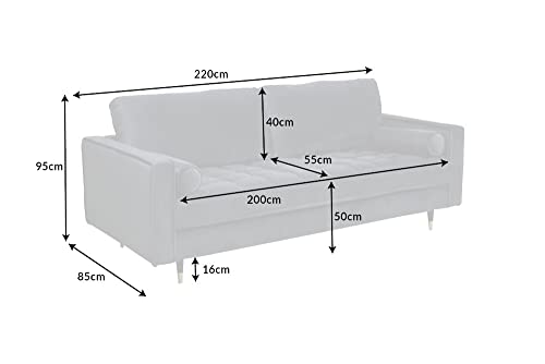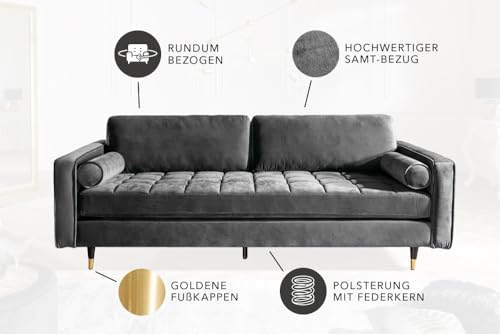 invicta INTERIOR Elegantes Design Sofa Cozy Velvet 220cm grau Samt Federkern 3er-Sofa Couch