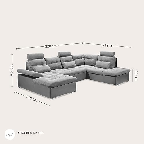 LEICHTE MONTAGE – Die Couchgarnitur ist infolge der Handbuch schnell und leicht aufgebaut. Sechs Rücken- und vier Nierenkissen sind im Lieferumfang enthalten. Maße: 324 x 107 x 170 (218) cm (B/H/T).