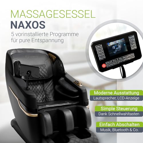 Juskys Massagesessel Naxos, elektronisch mit LCD-Bedienfeld, USB, Bluetooth, Airbags, Rollenmassage, Wärmefunktion, Fußverlängerung & Timer – Schwarz