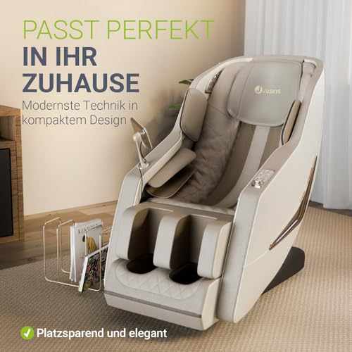 Juskys Massagesessel Paros, elektronisch mit Shiatsu, Bluetooth, Wärmefunktion, SL-Track, Zero Gravity, USB, Fernbedienung, Relaxsessel – Beige