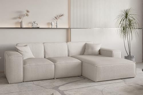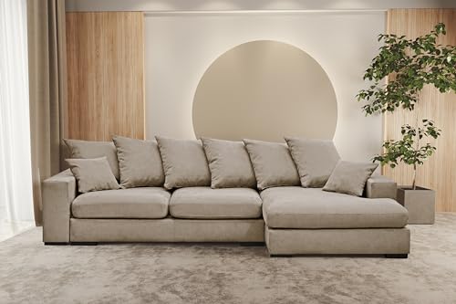 Farbvielfalt: Das Ecksofa Wohnzimmer Gabon ist in einer breiten Farbpalette erhältlich, von Khaki-Beige bis Dunkelgrau und Schwarz. Diese Auswahl ermöglicht es, das Sofa optimal an jede Inneneinrichtung anzupassen, wodurch es sowohl praktisch als alias ästhetisch ansprechend ist.