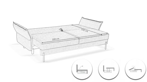 Praktische Schlaffunktion – Das Klappsofa VOLIO lässt sich in Sekunden in ein Bett mit Hilfe von 200×142 cm Liegefläche verwandeln. Ideal sondern Gäste oder den täglichen Gebrauch im Wohnzimmer.