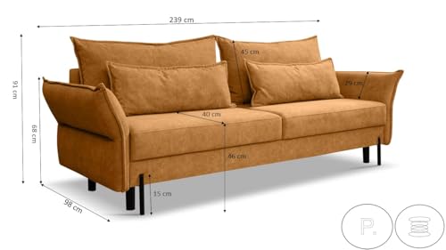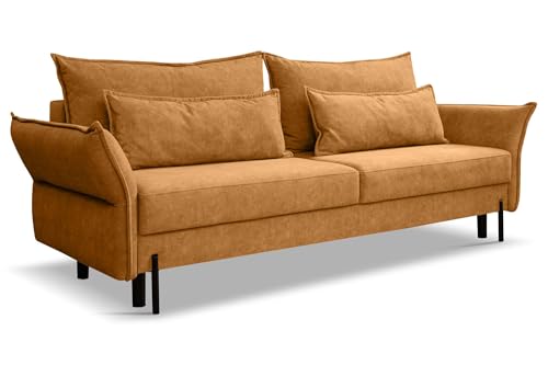 Kaiser Möbel – Sofa mit Schlaffunktion und Bettkasten – Couch 3 Sitzer – 239 x 98 cm – Klappsofa, Relaxsofa, Schlafsofa für Wohnzimmer, Jugendzimmer – Hohe Beine, Bonell-Feder – Volio – Golden