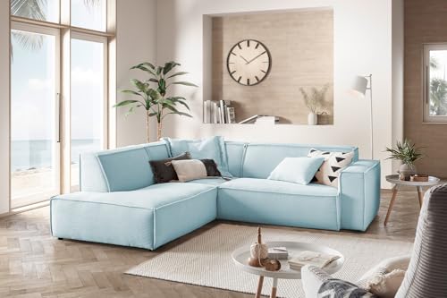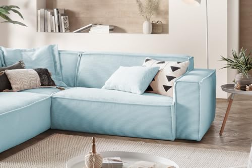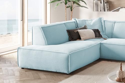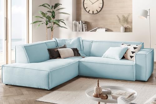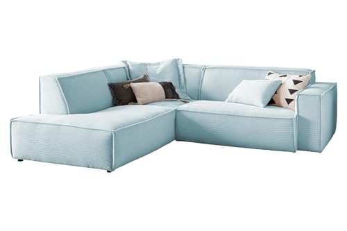 KAWOLA Wohnlandschaft Ecksofa Cord Hellblau L-förmiges Sofa SAMU, Recamiere Links, Lounge Sofa, Couchgarnitur Komfort