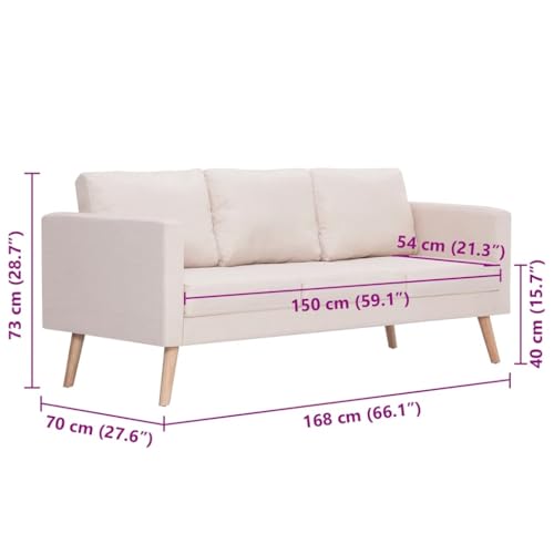 KLYEON 3-Sitzer-Sofa Stoff Cremeweiß,Elegantes 3er Sofa – Bequem und stilvoll für Wohnund Geschäftsräume Wohnzimmer, Sofas