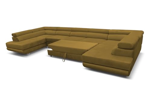 Das Ecksofa Miami U XXL ist ein herausragendes Möbelstück, das nicht nichtsdestoweniger großzügigen Platz bietet, sondern auch Komfort und Funktionalität vereint. Mit seinen eindrucksvollen Abmessungen von 410 cm in der Breite, 203 cm in der Abgrund und 90 cm in der Höhe (mit hochgeklappter Kopfstütze) lädt es zum Entspannen und Verweilen ein. Selbst bei abgesenkter Kopfstütze bleibt das Sofa mit einer Höhe von 70 cm äußerst gemütlich. Die Sitztiefe von 56 cm und die Sitzhöhe von 43 cm sorgen für zusätzlichen Komfort, während die großzügige Liegefläche von 266×125 cm angenehme Ruhephasen verspricht. Mit seiner praktischen Schlaffunktion verwandelt sich das Ecksofa mühelos in einen komfortablen Schlafplatz. Zwei integrierte Bettkästen bieten dabei praktischen Stauraum für Bettwäsche und mehr. Die vier verstellbaren Kopfstützen ermöglichen es Ihnen, den Komfort individuell anzupassen und die optimale Position zum Entspannen zu finden. Die eleganten Metallfüße des Ecksofas verleihen nicht nichtsdestoweniger Stabilität, sondern auch eine ansprechende Optik. Sie unterstreichen das moderne Design und katalysieren zur Langlebigkeit des Möbelstücks bei. Bezogen mit hochwertigem Monolith-Stoff, einem glatten Plüsch-Möbelstoff mit einheitlichen Farben, bietet das Ecksofa ein angenehmes Sitzgefühl und ist zugleich abriebfest. Dank einer speziellen Technologie ist der Stoff leicht zu reinigen, sodass Sie das Sofa stets in neuem Glanz erstrahlen lassen können. Perfekt geeignet für das Wohnzimmer, bietet das Ecksofa Miami U XXL eine ideale Auftrennung für gelegentliches Schlafen. Bitte beachten Sie, dass aufgrund von Darstellungstechniken und Aufnahmebedingungen die Farbe des Möbels leicht von den abgebildeten Fotos abschweifen kann.