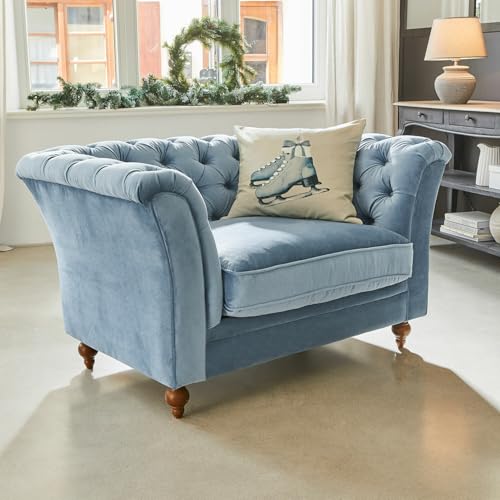 Loberon Sofa Clères, Klassischer Chesterfield-Stil, Bequem Gepolstert, Ikonisches Design, Sitzmöbel, Couch, Polyester, Eichenholz, Birkenholz, blau
