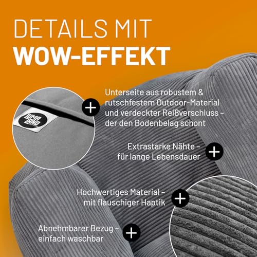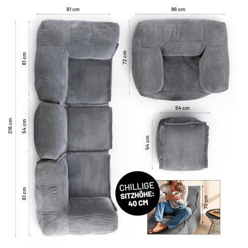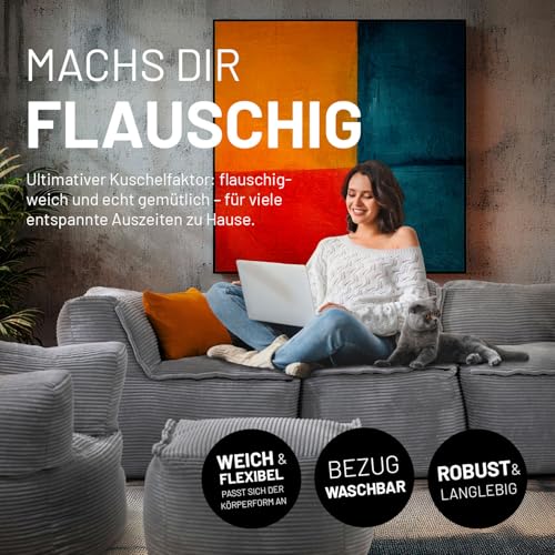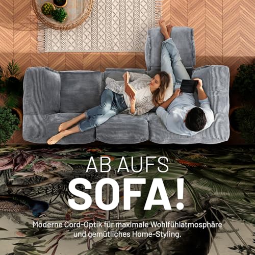 BOHO-WOHLFÜHL-STYLE: Das Basic Set ersetzt jeden Liegesack & sorgt dank moderner & gerippter Vintage-Textur für gemütliches Home-Styling. Dank verschiedener Trendfarben passt es ideal zu anderen LUMALAND-Möbeln (verriegelt erhältlich). Stell dir grade deine eigene XXL Cord Sitzgarnitur zusammen.