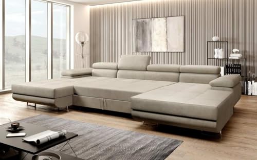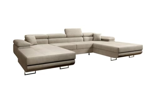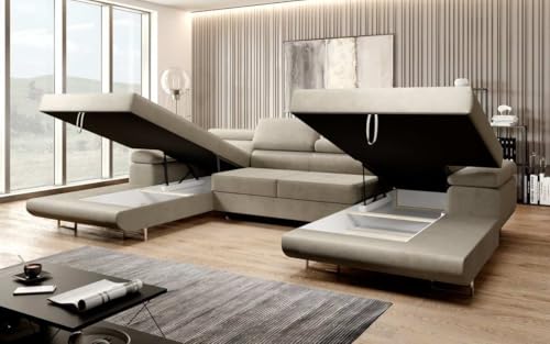 Luxusbetten24 Designer Sofa Calvera U Designer Sofa Calvera U mit Schlaf- und Klappfunktion | Bezug: Samt | Farbe: Beige