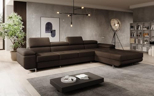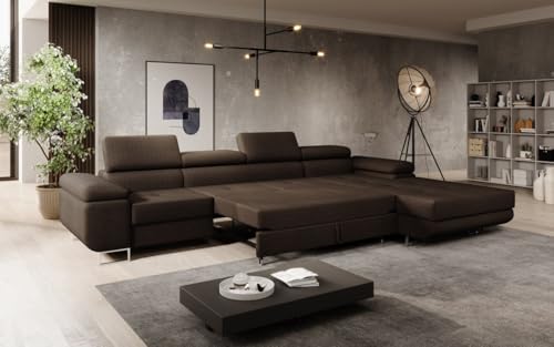 Luxusbetten24 Designer Sofa Designer Sofa Calvera Maxi in Bouclé mit Stauraum und Schlaffunktion | Bezug: Bouclé | Farbe: Braun | Stellvariante: Rechts