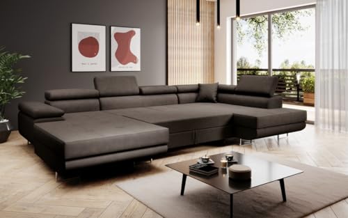 Luxusbetten24 Designer Sofa Matera Designer Sofa Matera mit Schlaf- und Klappfunktion | Bezug: Stoff | Farbe: Braun