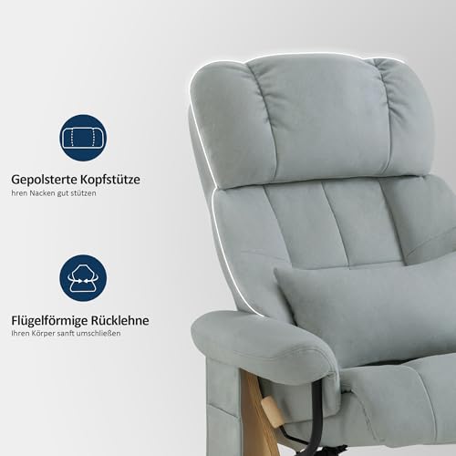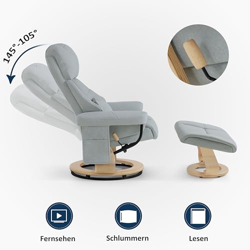 M MCombo Relaxsessel mit Hocker, Drehbare Fernsehsessel mit Liegefunktion, Moderner TV-Sessel Stuhl für Wohnzimmer, mit Kissen & Seitentasche, 9066 (Mikrofaser, Hellgrau)