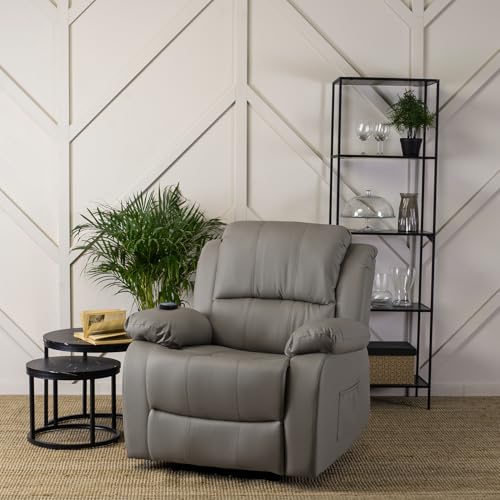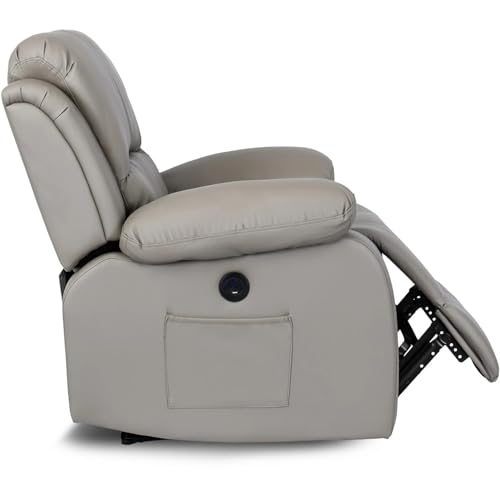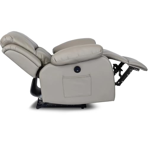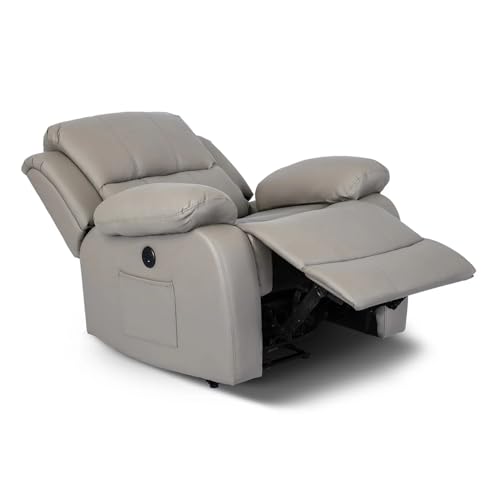 MEBEL ELITE BONO Massagesessel Grau Kunstleder Elektrisch Verstellbarer Relaxsessel mit Liegefunktion und USB Anschluss für Wohnzimmer und Büro