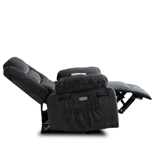 MEBEL ELITE Jasper – Massagesessel Dunkelgrau mit elektrischer Verstellung – Komfortabler Relaxsessel mit Fußstütze & Schlaffunktion – Gepolsterter TV Sessel für modernes Zuhause