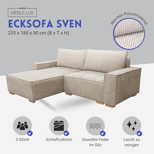 Ecksofa mit Schlaffunktion und Bettkasten (Schlaffläche: 190×140 cm)