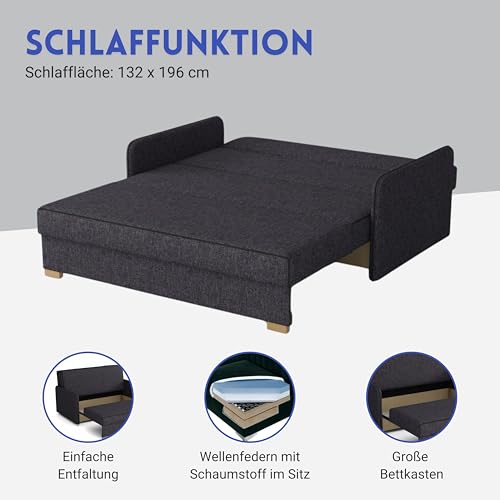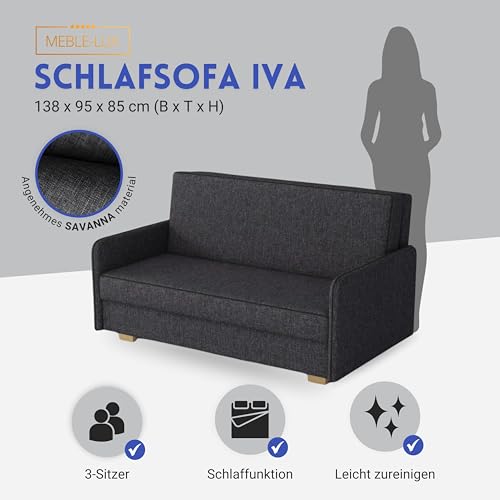 MEBLE-LUX Schlafsofa mit Bettkasten IVA 138 cm Breit I 3 Stzer Sofa mit Schlaffunktion I Schlafcouch Ausziehbar I Klappsofa für Kinder- oder Gästezimmer I Sofa Klein in Grau