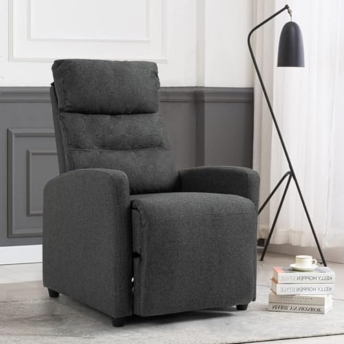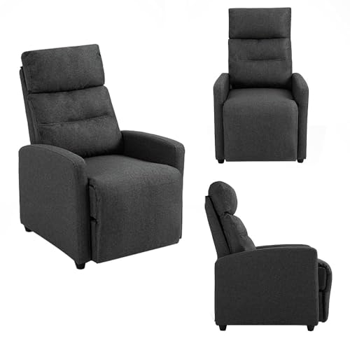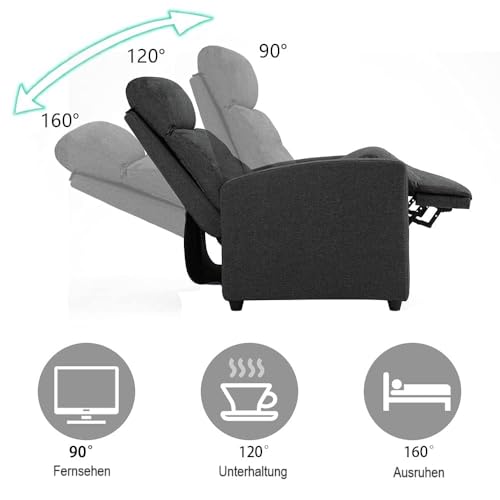 Mingone Fernsehsessel mit Liegefunktion für Wohnzimmer Relaxsessel mit Hocker Lesesessel mit Verstellbarer Rückenlehne TV Sessel mit Schlaffunktion Einzelsofa mit Armlehne, Dunkelgrau