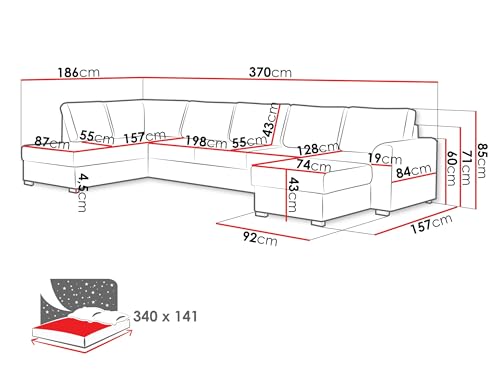 Mirjan24 Ecksofa Wilma Large für große Räume, 2 Bettkasten Schlaffunktion Schlafsofa Bettsofa Eckcouch Polsterecke Sofa Couch Couchgarnitur Wohnlandschaft (Wave 09, Seite: Links)