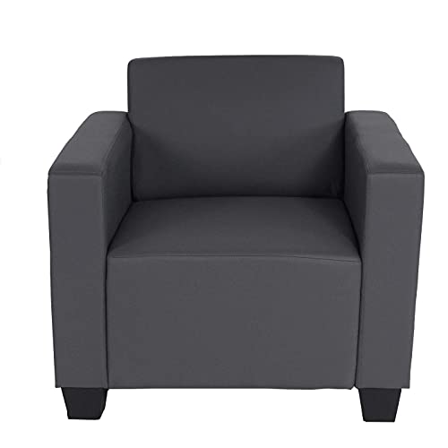Dimensionen (HxLxB): 76x72x193cm | Material: Bezug: Kunstleder (100% Polyurethan) – Rahmen: Sperrholz ganz Pappel – Füllung: Schaumstoff (100% Polyurethan) – Fußstützen: Kunststoff | Farbe: Bezug: dunkelgrau – Füße: schwarz