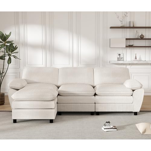 【Individuelles Design & Flexibilität】 Dieses modulare Sofa kombiniert drei Sitzelemente und einen abnehmbaren Hocker (71×57,9×62,9 cm), der als Fußbank, Zusatzsitz oder Loungemodul dient. Gestalten Sie Ihr Wohnzimmer als L-Form, Doppelsofa oder mit separatem Ottomane – ideal für kleine Räume oder offene Wohnkonzepte. Die höhenverstellbaren Füße (7,1 cm) passen sich jedem Bodenbelag an.