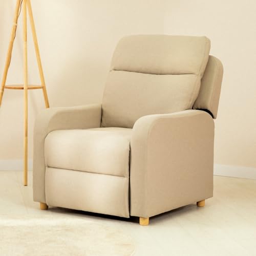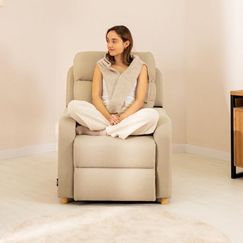 Nalui – Sessel Wohnzimmer, Fernsehsessel (77 x 87 x 98 cm) mit Verstellbarer Beinablage, Manueller Drucköffnung und Verstärkter Struktur. Relaxsessel mit Liegefunktion 160° | Beige
