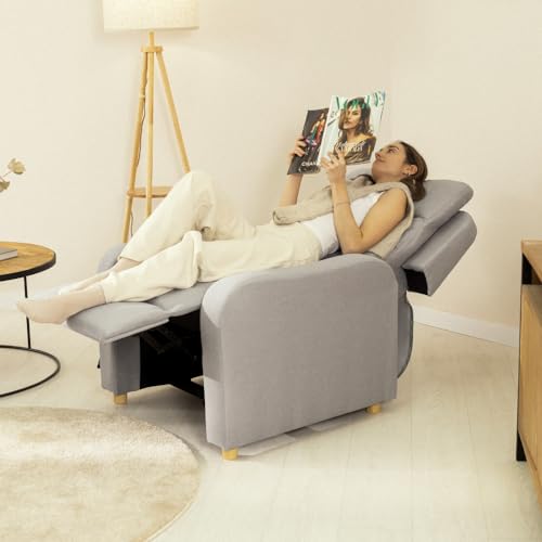 Nalui – Sessel Wohnzimmer, Fernsehsessel (77 x 87 x 98 cm) mit Verstellbarer Beinablage, Manueller Drucköffnung und Verstärkter Struktur. Relaxsessel mit Liegefunktion 160° | Grau