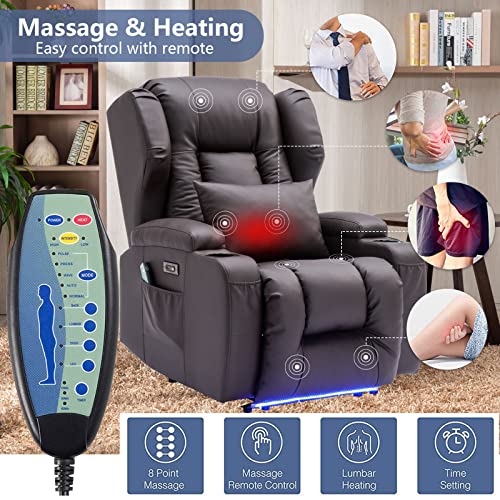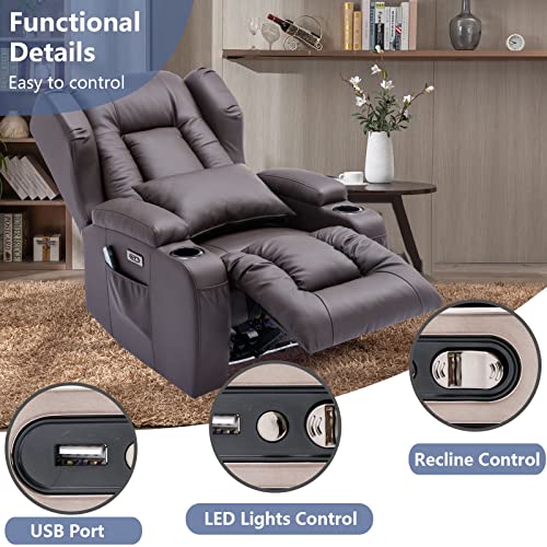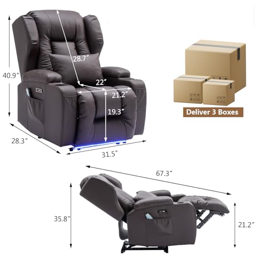 Oprisen Kunstleder Elektrisch Verstellbar Relaxsessel Kinosessel Fernsehsessel mit Liegefunktion Massage und Wärme TV Sessel Modern Liegesessel Sofa für Wohnzimmer,bis 150 kg, Braun
