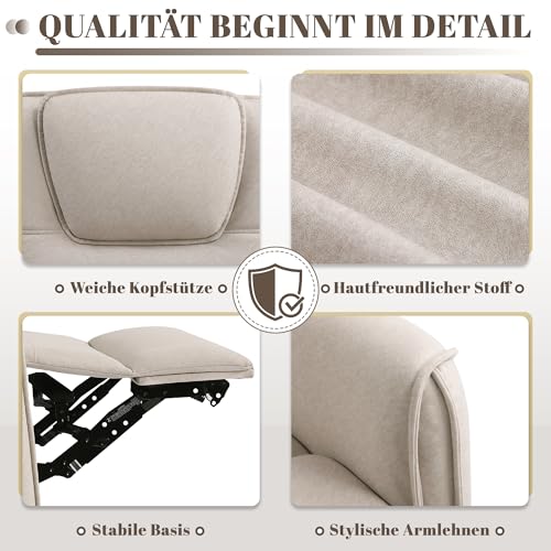 【Leise elektrische Liegefunktion】Unter Einsatz von Knopfdruck passen Sie Rückenlehne und Fußstütze stufenlos an. Der Anlage arbeitet leise und zuverlässig, sodass Sie entspannt lesen, fernsehen oder ein Nickerchen kreieren können
