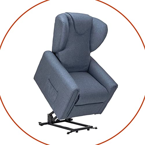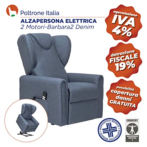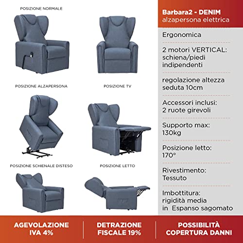 POLTRONE ITALIA Barbara 2 Motoren fernsehsessel mit aufstehhilfe Medizinisches Gerät 2 Räder Mikrofedersitz schmutzabweisend seniorensessel relaxsessel elektrisch Blau Denim