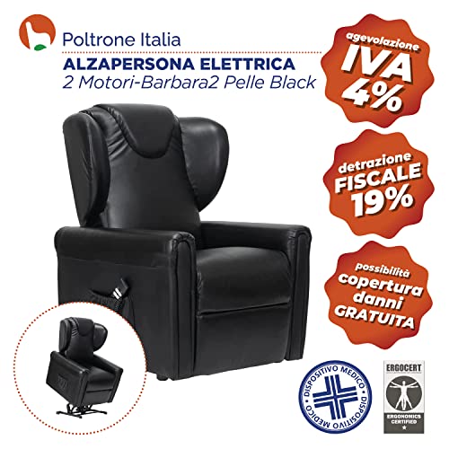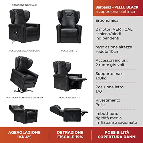 POLTRONE ITALIA Barbara 2 Motoren Leder fernsehsessel mit aufstehhilfe Medizinisches Gerät Trolley-Räder Mikrofedersitz seniorensessel relaxsessel elektrisch Schwarz
