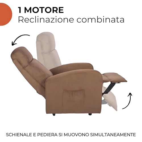 POLTRONE ITALIA Chanel1 fernsehsessel mit aufstehhilfe Medizinisches Gerät 2 Räder Mikrofedersitz Flauschige seniorensessel mit aufstehhilfe elektrisch relaxsessel elektrisch Braun