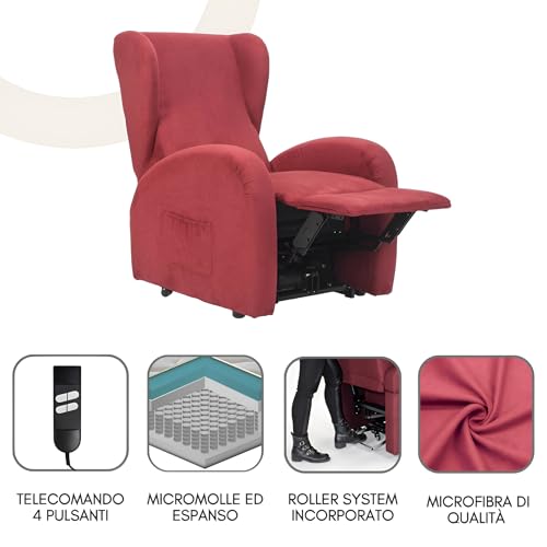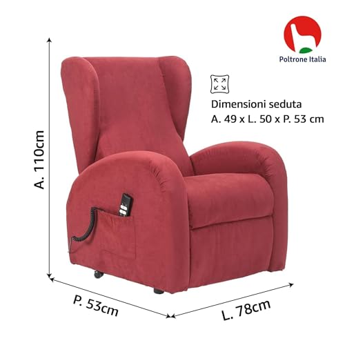 POLTRONE ITALIA Irene 2 Motoren PERSONALISIERTEN fernsehsessel mit aufstehhilfe elektrisch Medizinisches Gerät Trolley-Räder Mikrofedersitz Rot