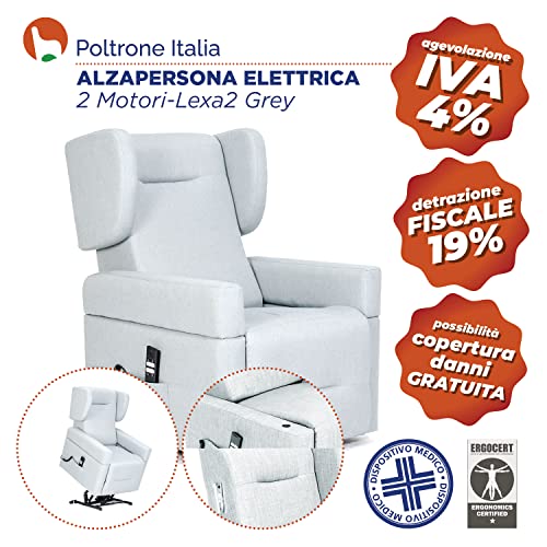 POLTRONE ITALIA Lexa 2 Motoren Sessel mit aufstehhilfe Medizinisches Gerät abnehmbare Armlehnen Mikrofedersitz fernsehsessel elektrisch schlafsessel Dunkelgrau