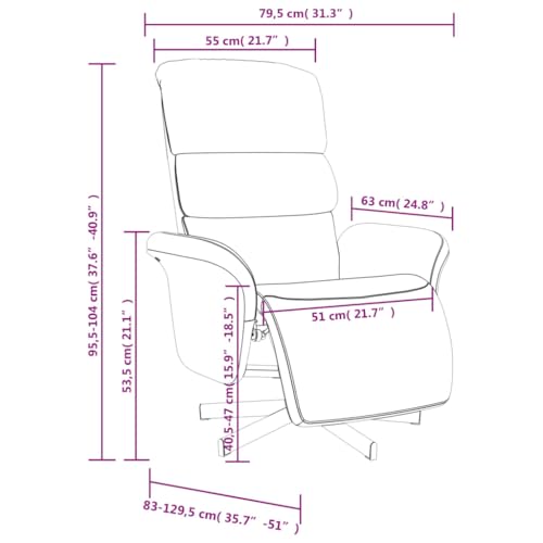 Maße & Lieferumfang: 79,5 x 83 x 104 cm (Absitzen), 79,5 x 129,5 x 95,5 cm (Liegen), Sitzbreite 51 cm, Sitztiefe 63 cm, Armlehnenhöhe 53,5 cm – inkl. Montageanleitung für schnellen Aufbau, im Rahmen als kleiner Sessel für Schlafzimmer oder Lounge-Sofa-Attachment.